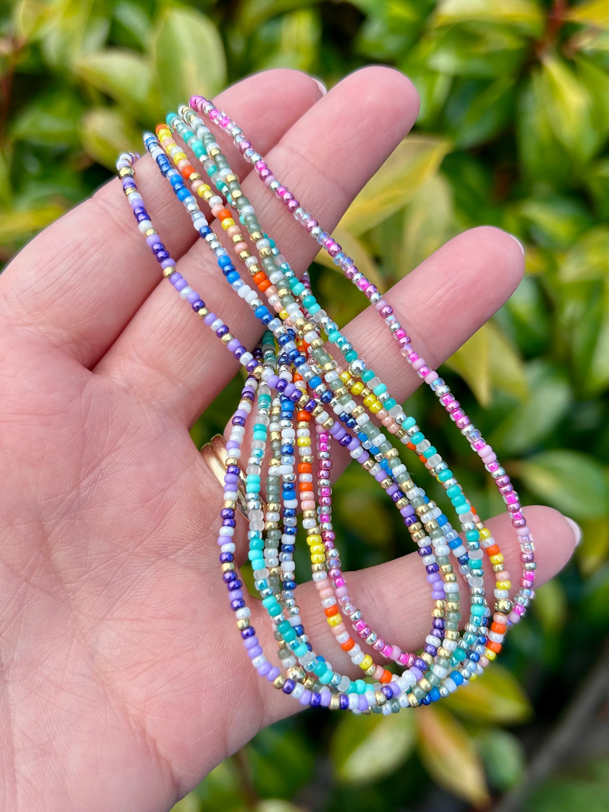 Colourful Dainty Seed Bead Anklet – Gold or Silver