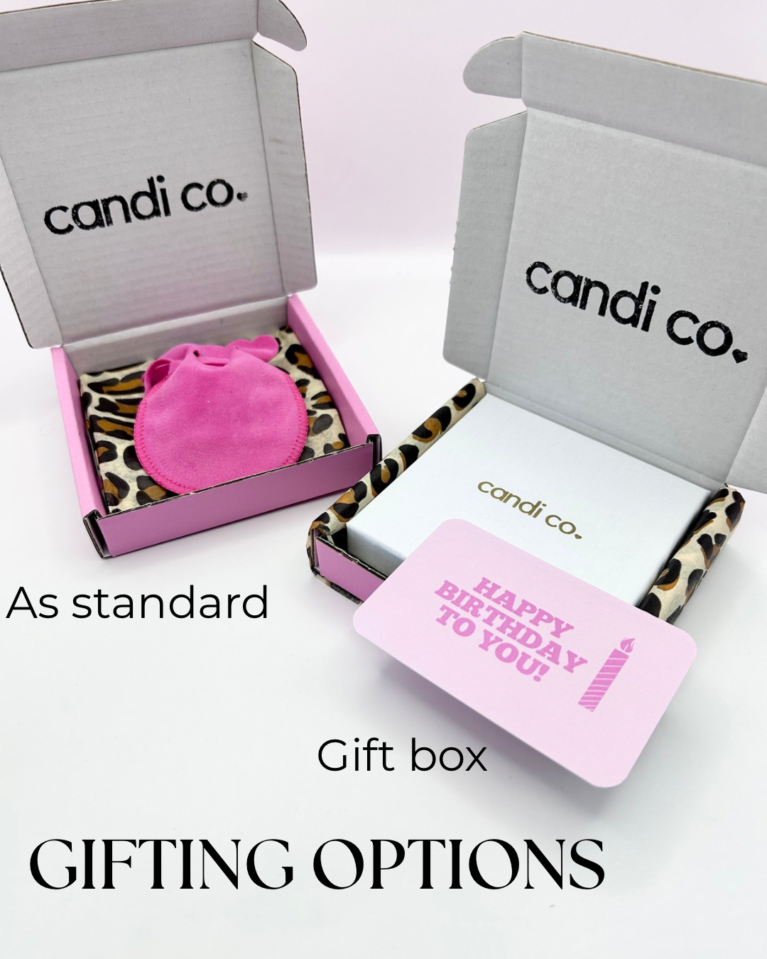 Suitable for most items from our shop, the foam may be removed for some larger items, e.g. pearls, and replaced with our standard pink pouch.