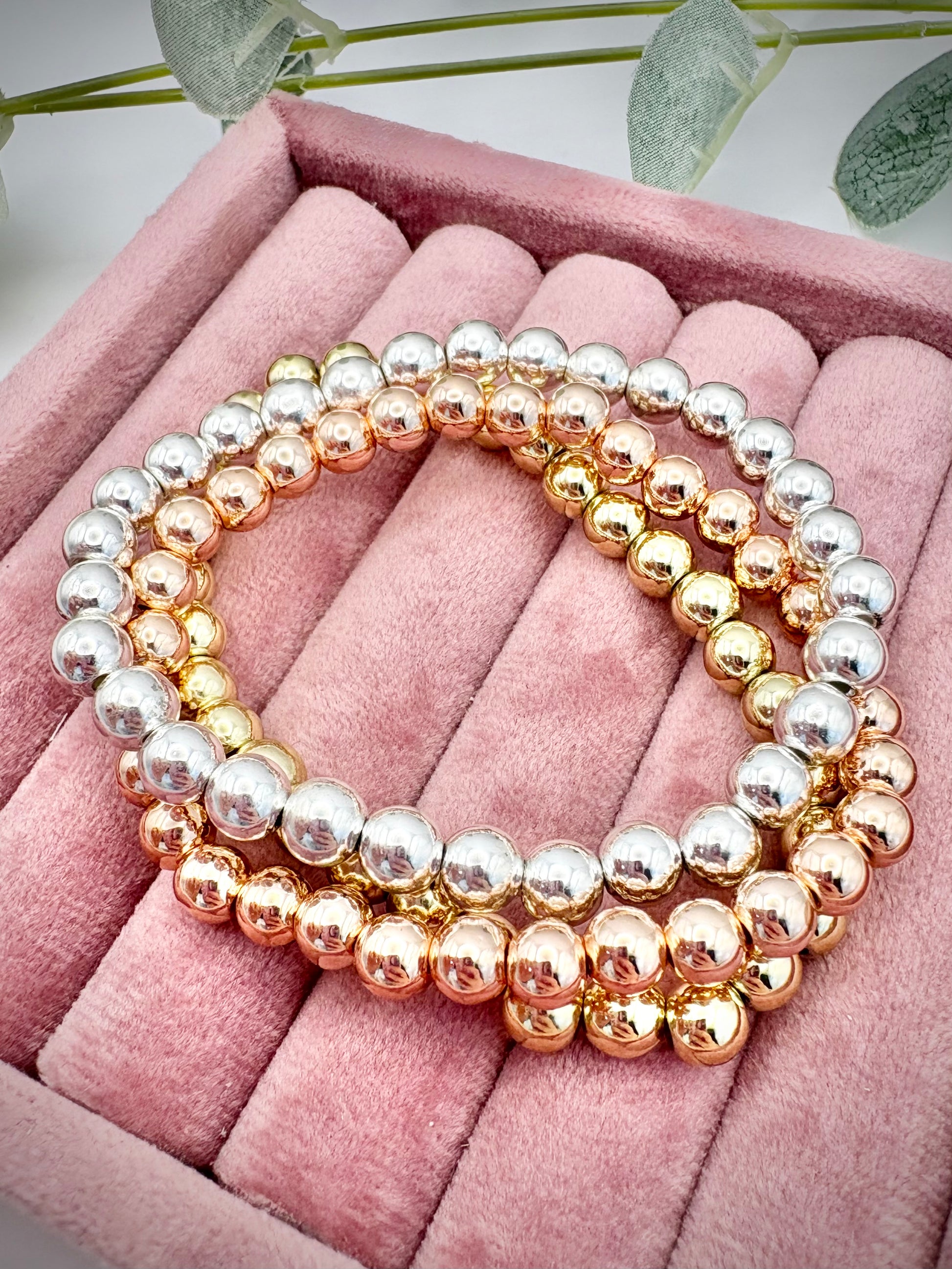• Made with 6mm natural hematite gemstones, plated in either gold, silver or rose gold