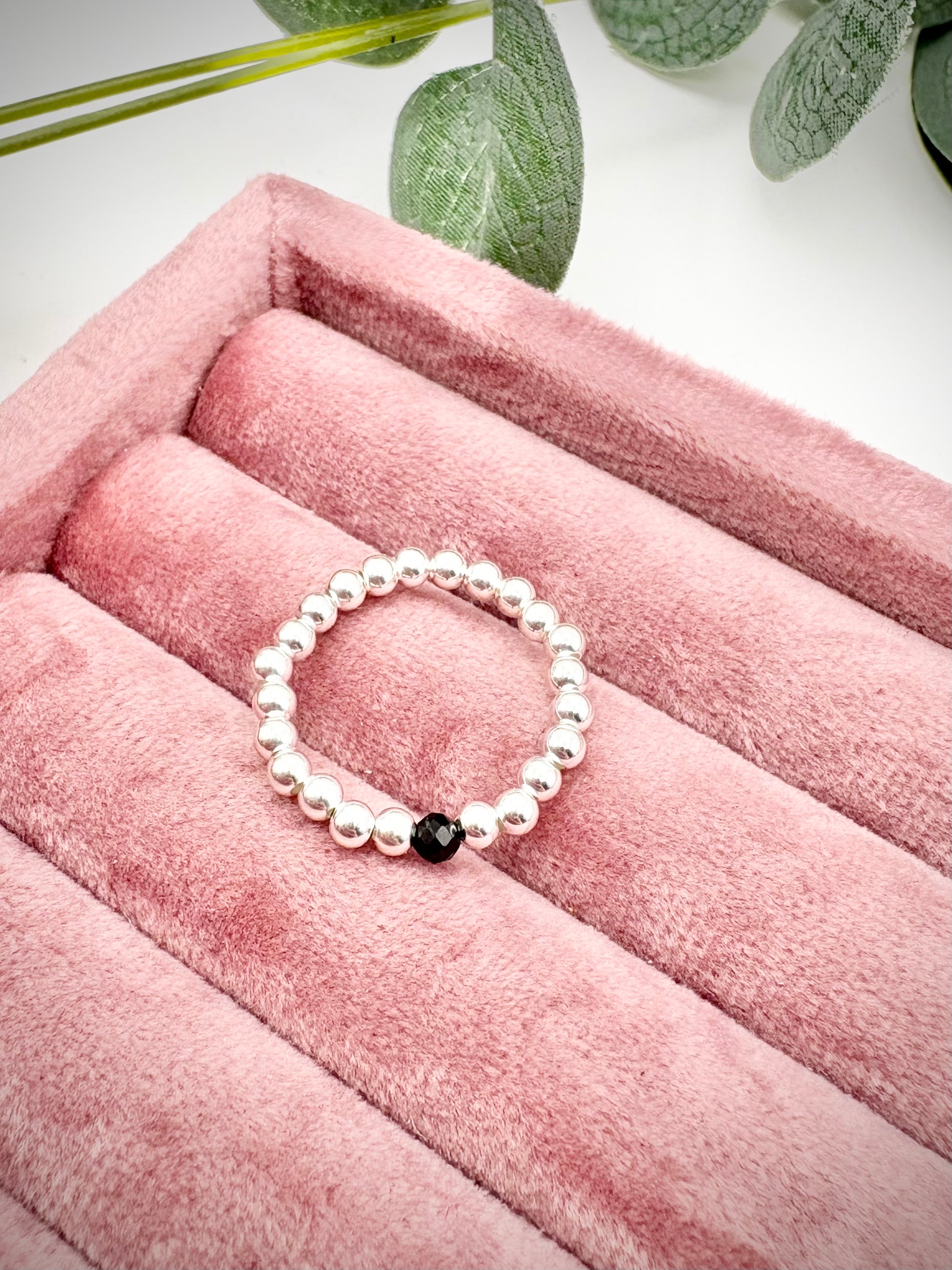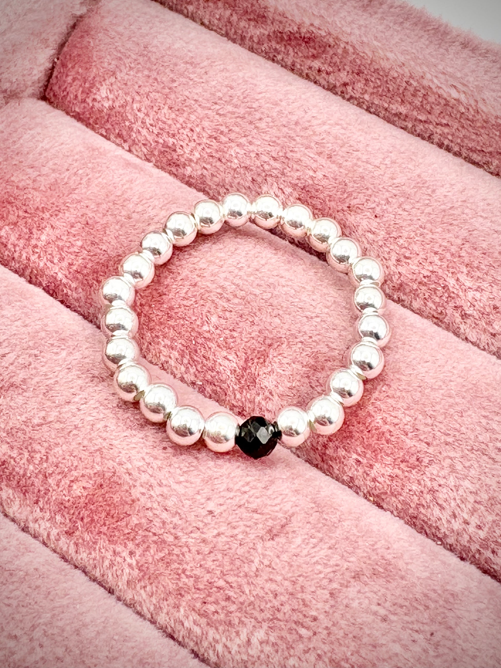 Hand-strung with 925 sterling silver beads, this dainty luxe stretchy ring is designed to be stylish yet comfy and can and worn every day.