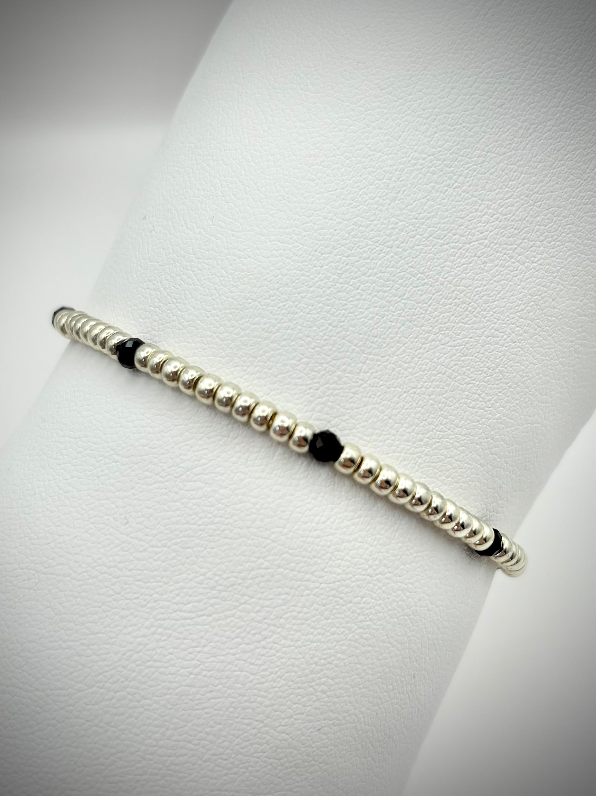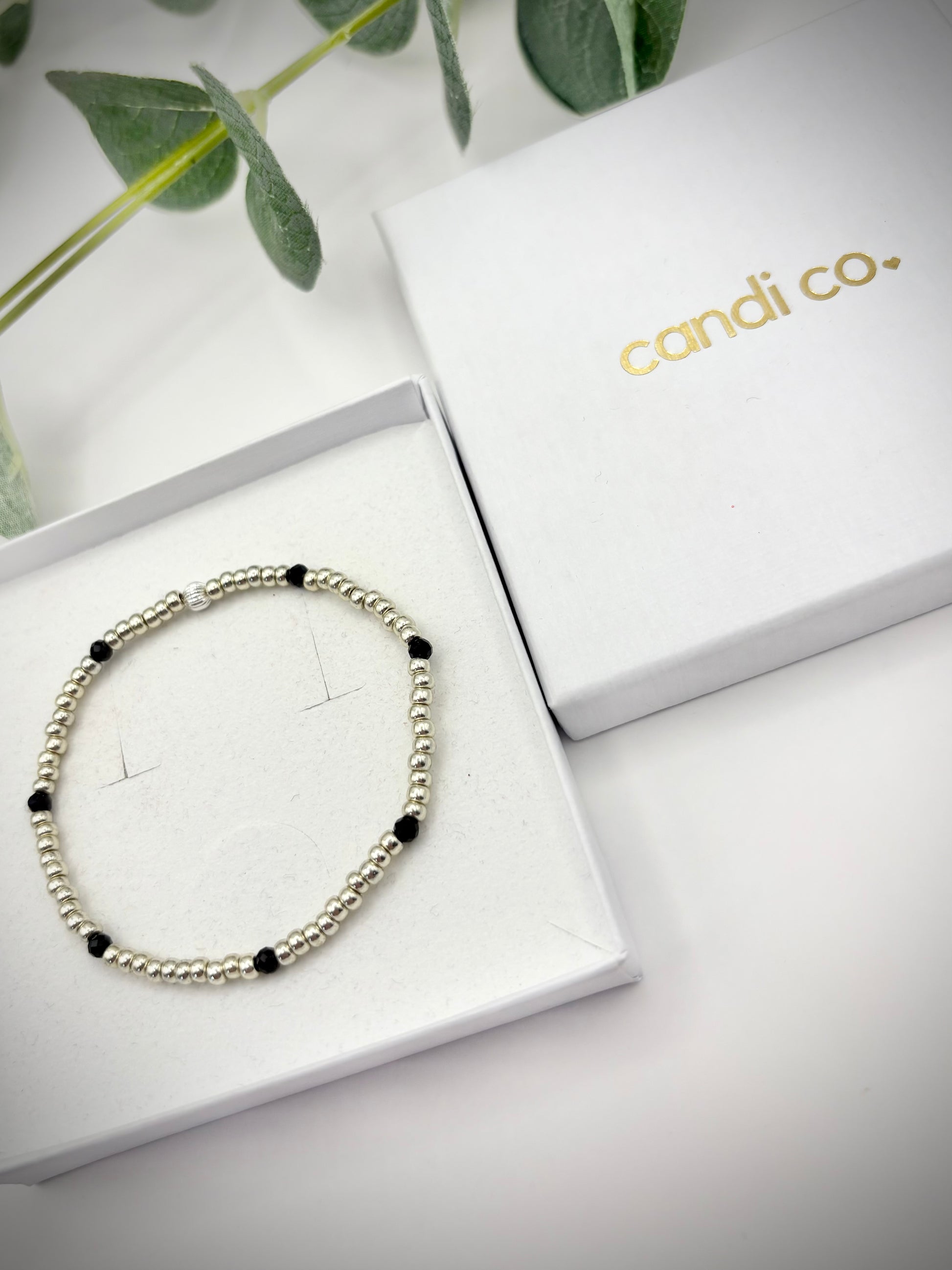 This handmade bracelet is made with Japanese Miyuki seed beads - in either gold or silver - with dainty faceted sparkly black tourmaline stones. Lightweight and stylish, they’re perfect for stacking or wearing solo.