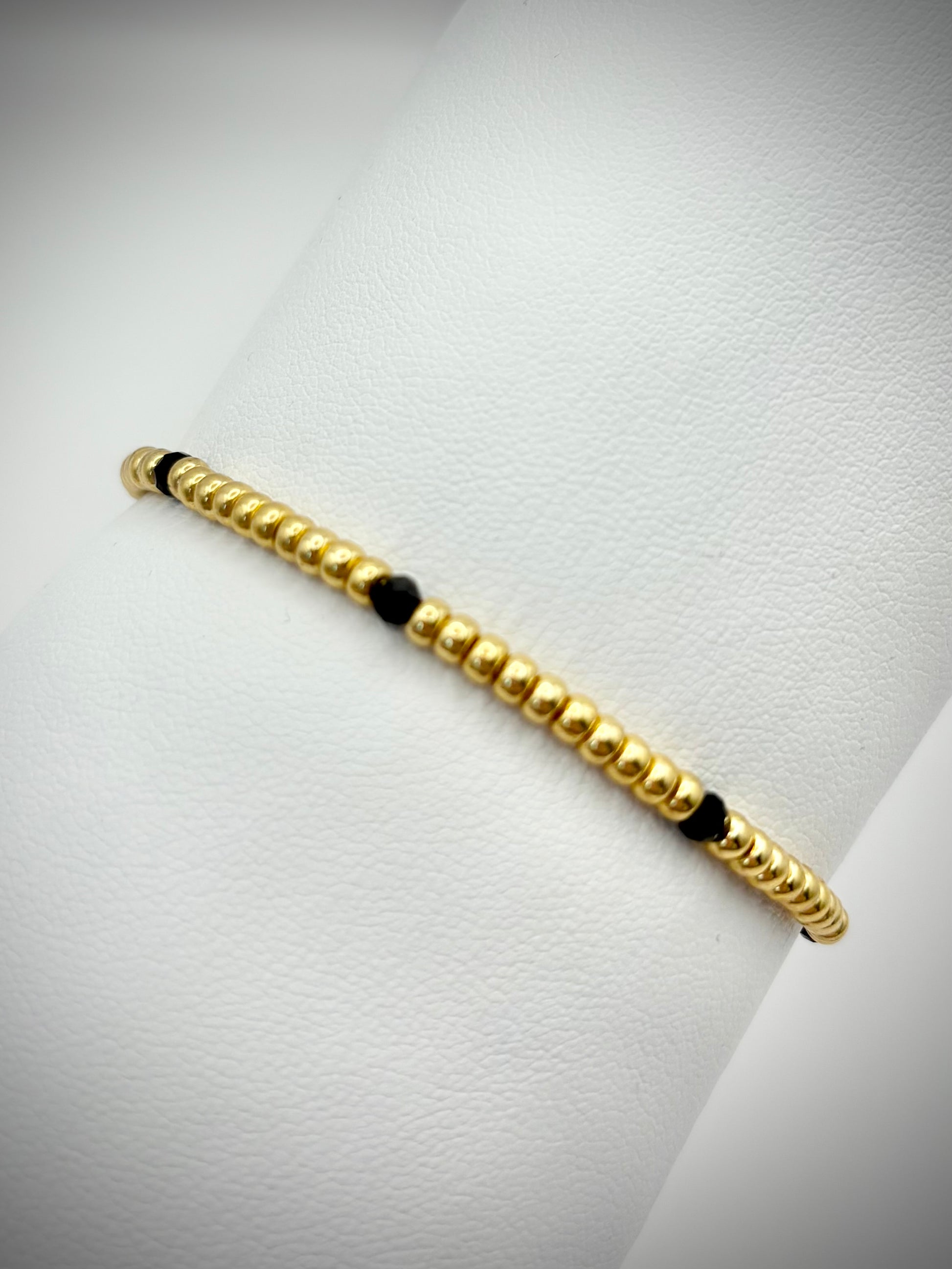 Seed Bead and Black Tourmaline Gemstone Bracelet - Gold or Silver