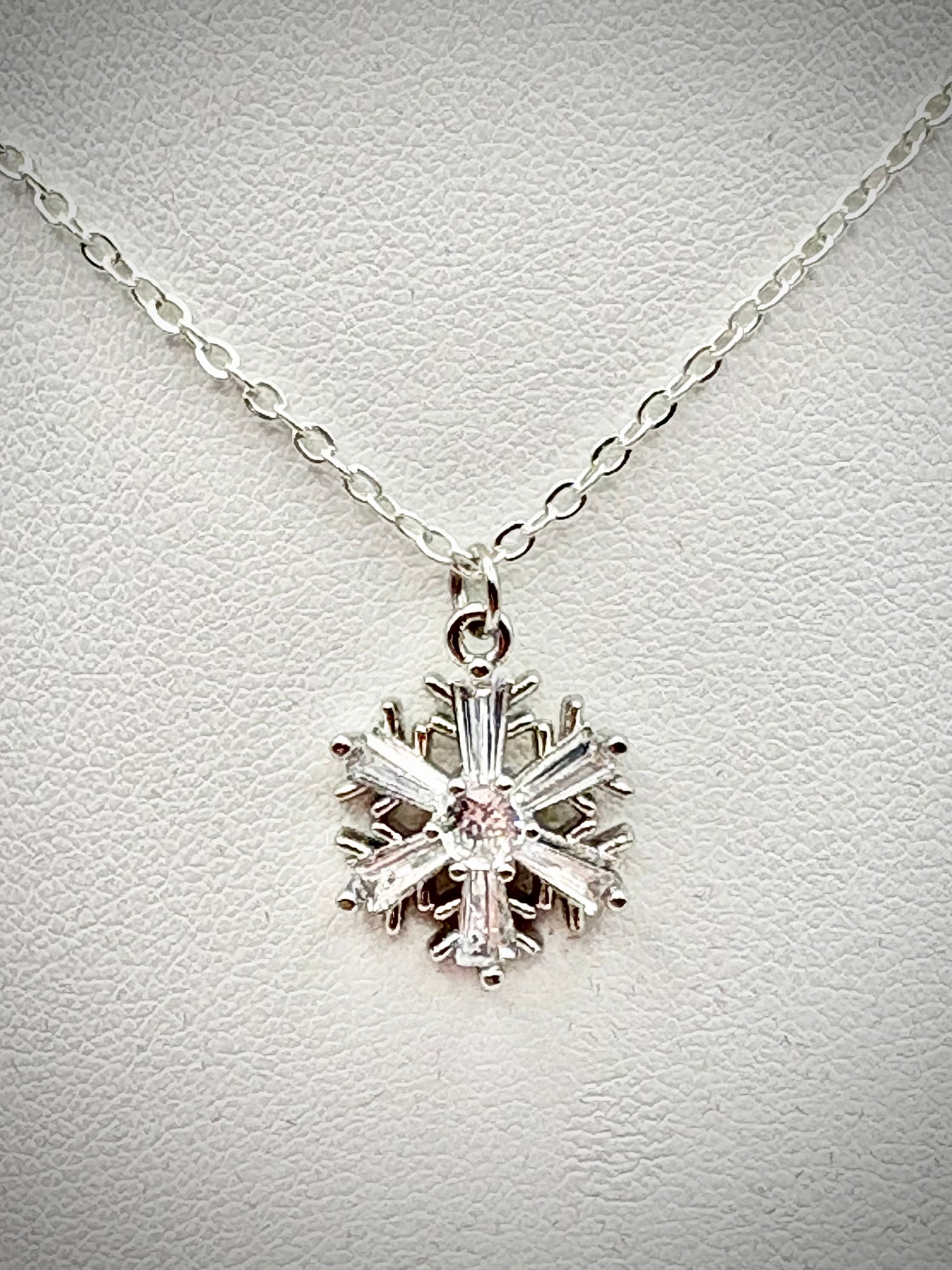 Sparkly Snowflake Necklace - Gold or Silver-Plated
