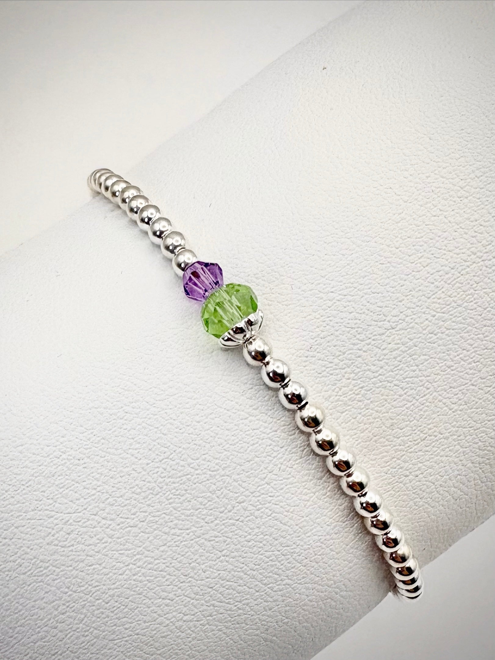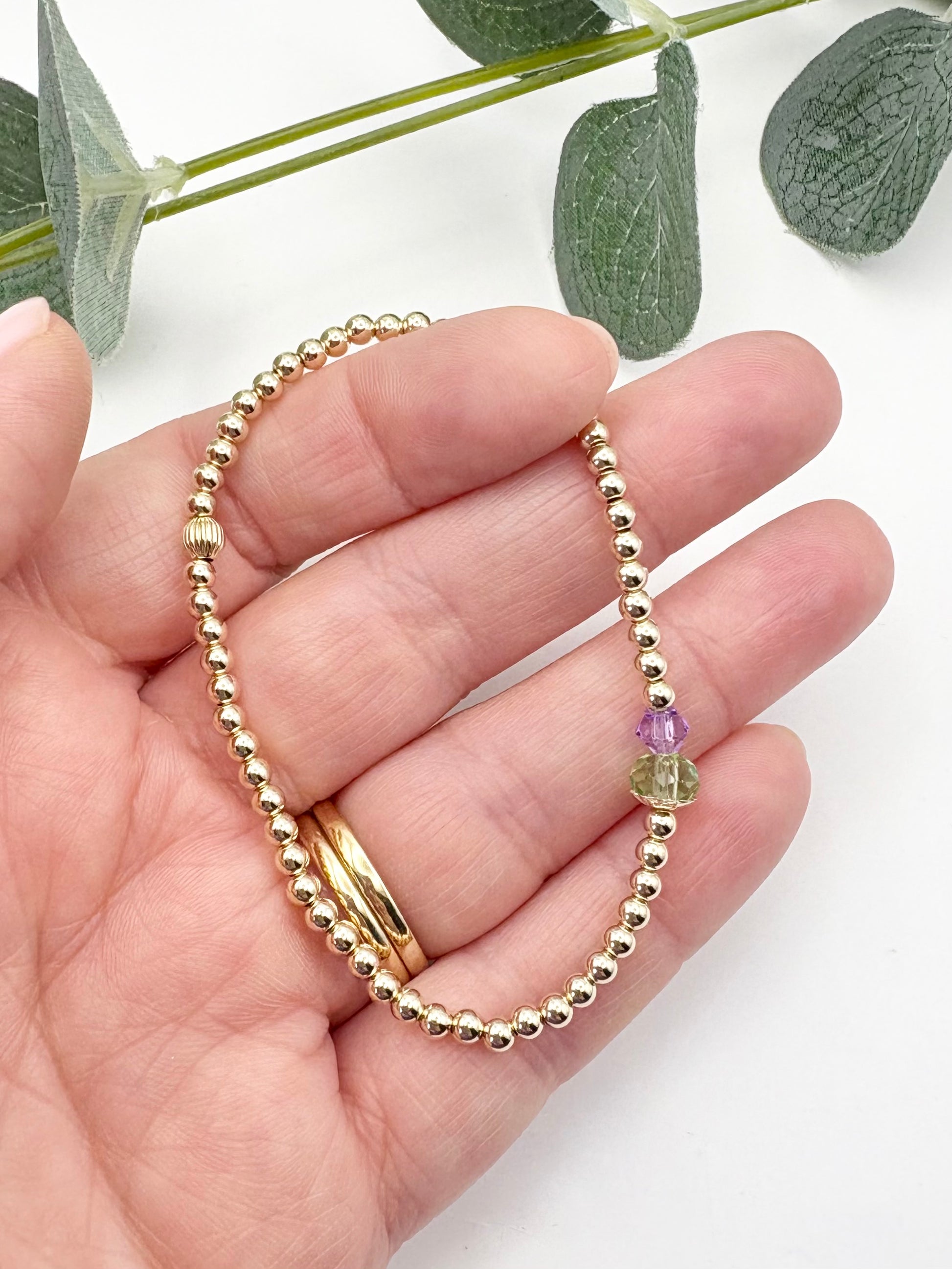 Thistle Dainty Beaded Stretch Bracelet - Sterling Silver or Gold-Filled