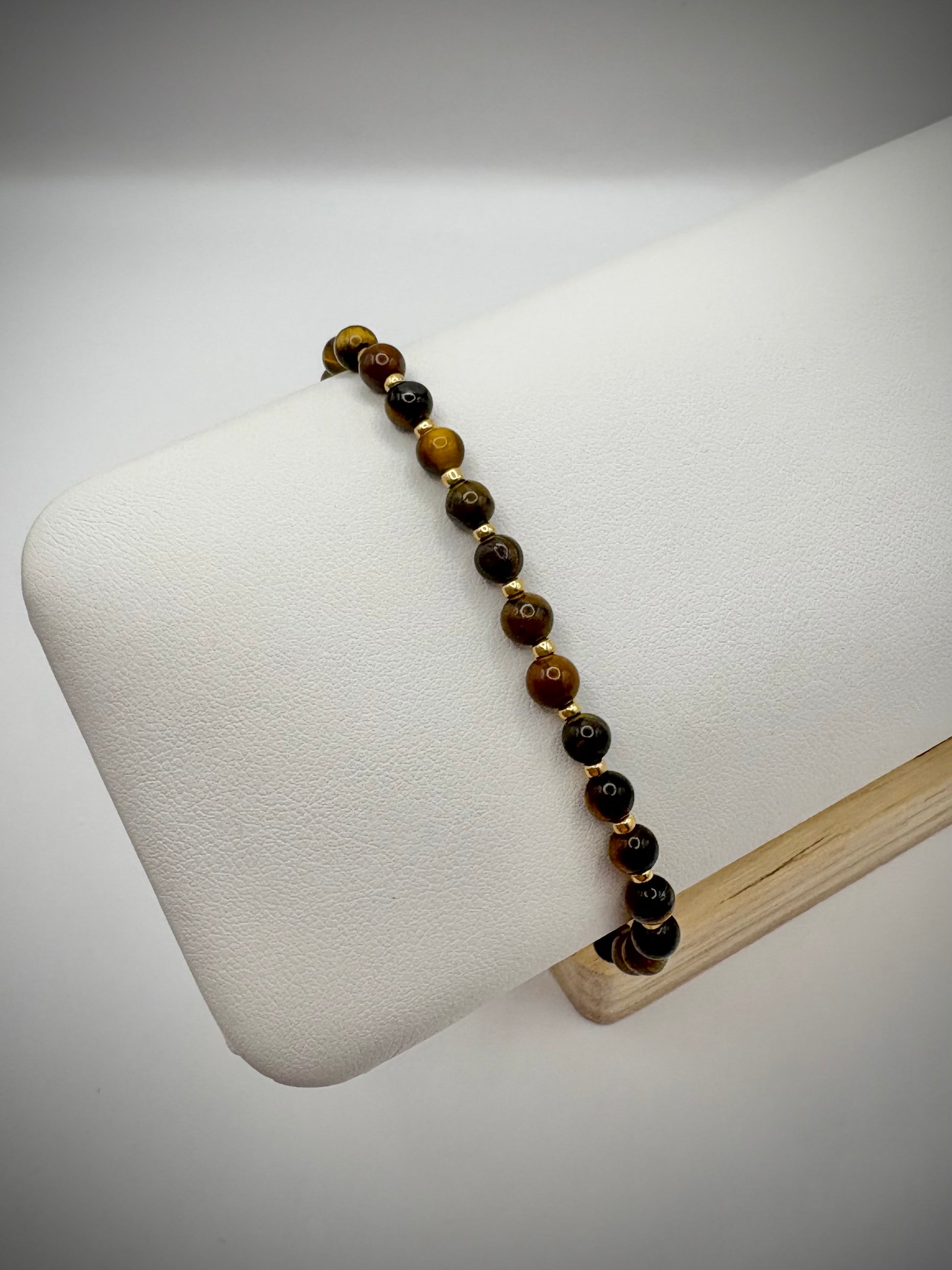 Tiger's Eye Gemstone Seed Beaded Bracelet - Gold Filled or Plated